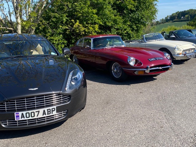 The convoy met for a coffee at the large car park at Seven Springs, and it was here that one of the Club members turned up in a hearse!! Having been told that the next stop was to the care home, and that his car could cause a panic with the residents, he decided to finish his coffee and not join the convey!!