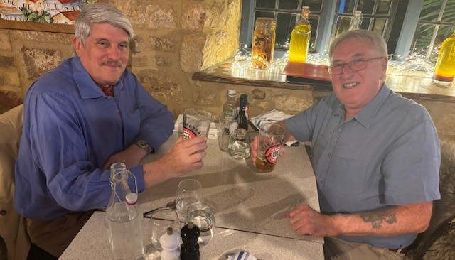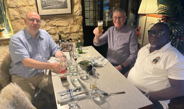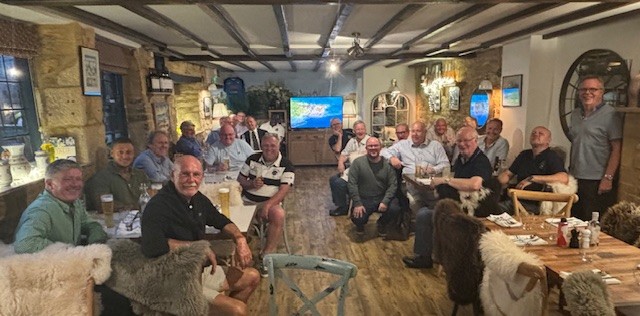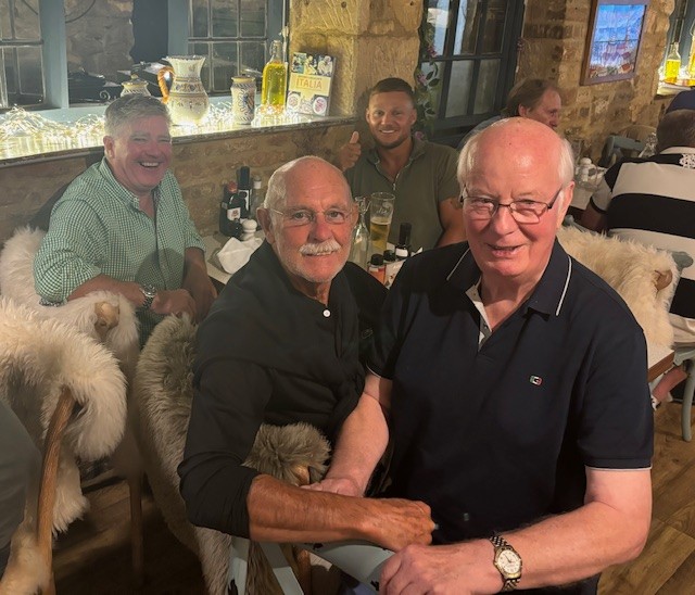 Once the JLOI was concluded we moved to the restaurant for some well deserved refreshment. W. Bro Paul Leadbeater finds a fellow Yorkshireman - not a flat cap in sight!