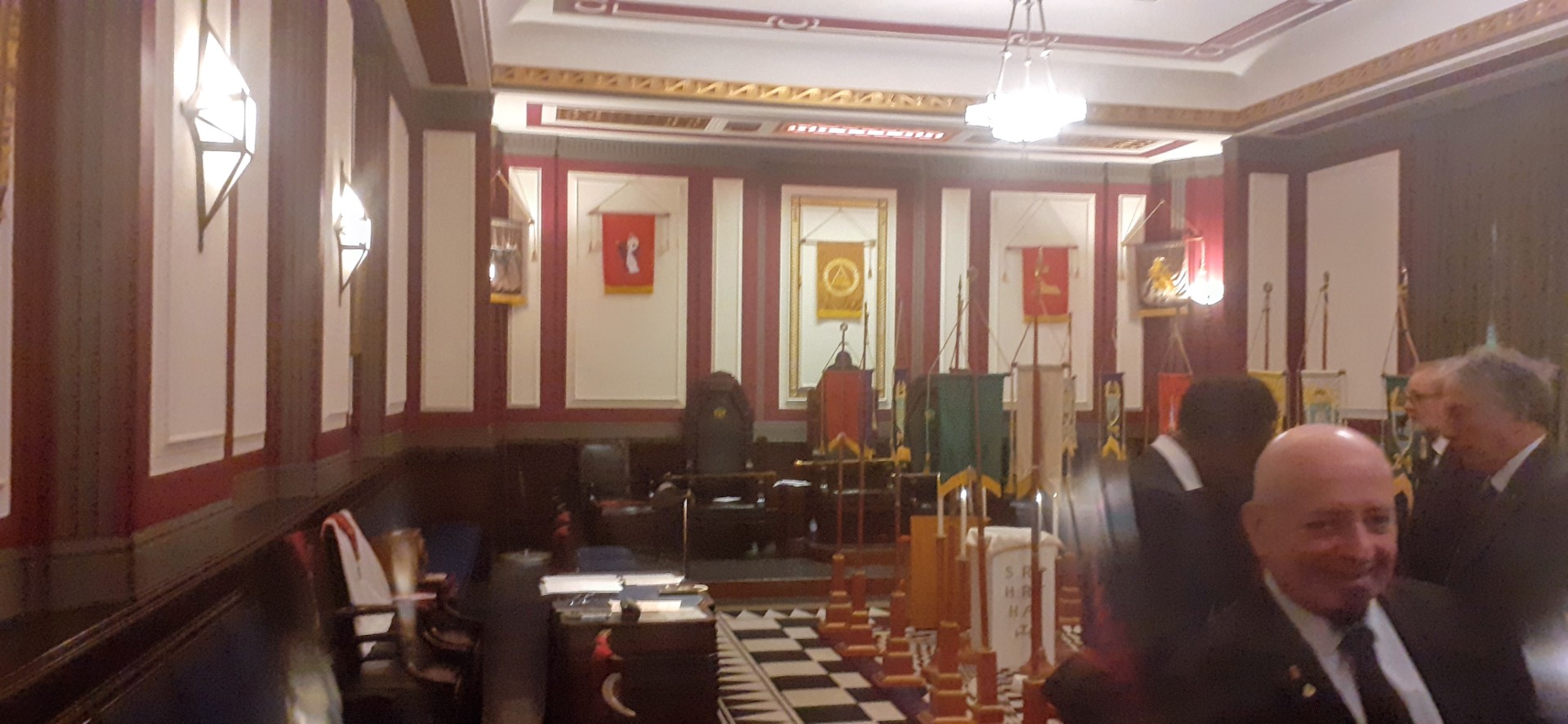 On Wednesday 16th April E Comp Rob Dewbery accompanied E Comp Rob Nichols of Rathcreaden Chapter, Banbury to visit Enoch Chapter No XI to be held in Temple 5, Great Queen St, as guests of Comp Robin Hale, to see an excellent Double Exaltation Ceremony. With members coming from far and wide, the opportunity to have rehearsals was obviously limited, but nevertheless, the ceremony was carried out with traditional decorum. The MEZ was from Belgium and despite English not being his first language his grasp of the ritual was excellent, and 'our host' as Principal Sojourner, despite maintaining he was unable to learn ritual, put in a very polished performance.
