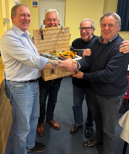 Our Worshipful Master presented the prizes to the winning teams - Team Lynden with a hamper stuffed full of goodies. Lynden was ably supported by Ross and Keith and their partners - enjoy the goodies at your next house party!