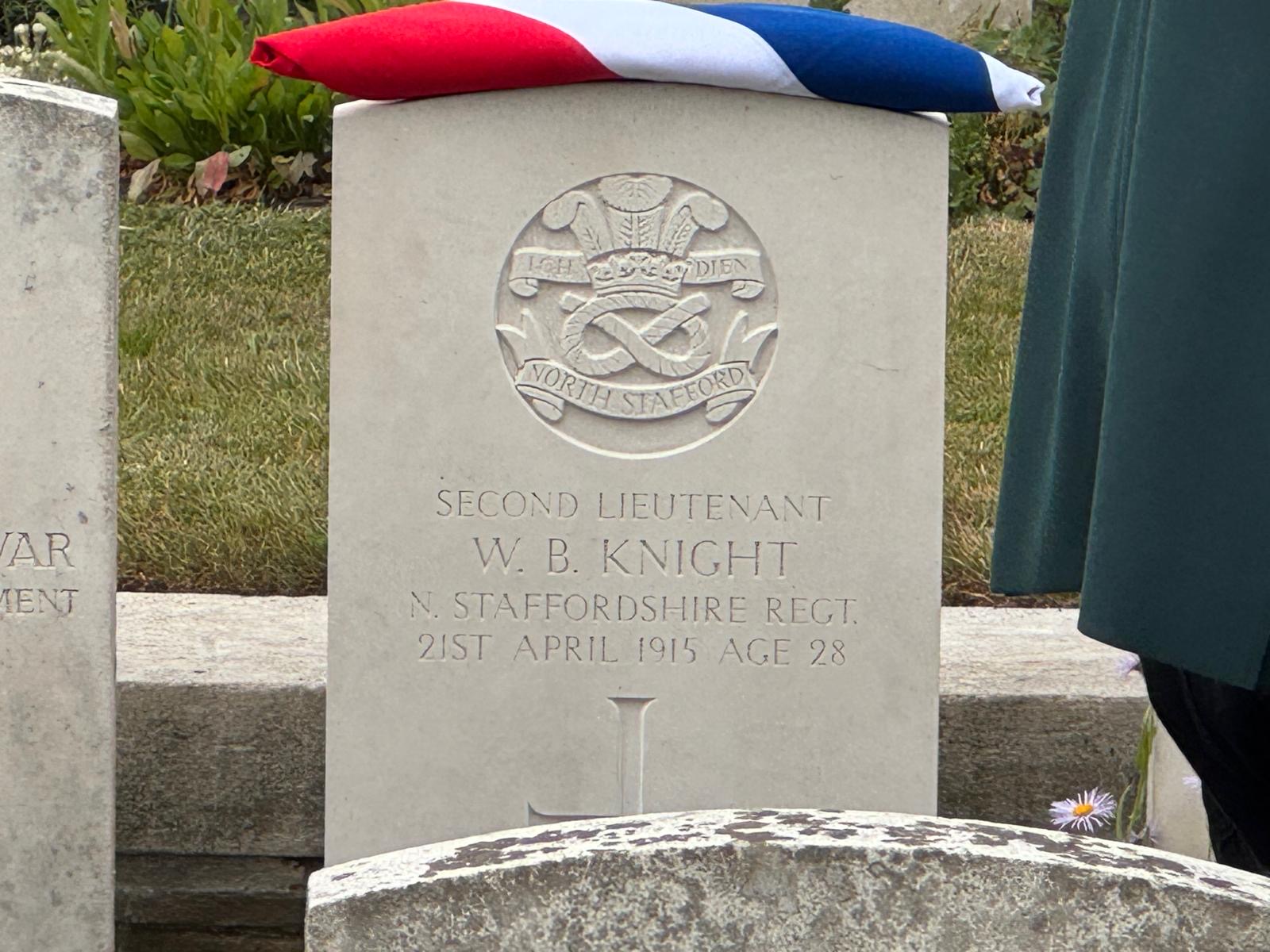 Now enter the War Detective Rosie and team who recently, after extensive research have revealed that 2Lt Knight is the only man missing in this part of Belgium who could possibly match the description of the unknown officer. Finally, after 110 years we know the final resting place of 2Lt Knight and were able to reunite his physical remains with his name. And on the 22nd May 2025 Rosie, Tony and Ross had the honour of attending the a very moving rededication of his grave at Oosttaverne Wood Cemetery.
