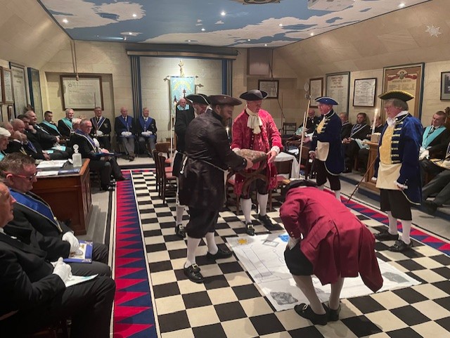 In front of a packed Lodge room the team, appropriately dressed in period custom, transported the audience back 220 years and conducted an initiation ceremony with great skill and humor.