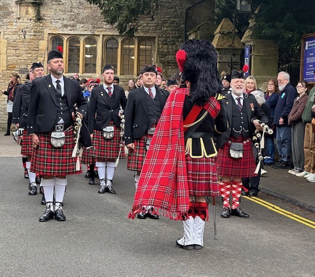 The parade was led with stirring precision by the Cheltenham Pipe Band, whose music set a solemn and respectful tone as we made our way through the town. Following a moving service at St Edward’s Church, the procession continued to the Royal British Legion, where a well-earned cup of tea provided a welcome moment of reflection and camaraderie.