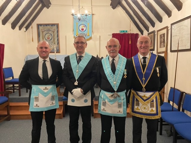 28th Nov 2022 - Our WM and IPM getting into the Christmas spirit at the festive board during a visit to our daughter Lodge, Chipping Campden. Our WM and IPM where accompanied by our DC - Congratulations to Bro Peter Brierley on his being passed to the second degree. Fantastic evening at our other Hill Top Lodge. Thank you Chipping Campden for being wonderful hosts once again!